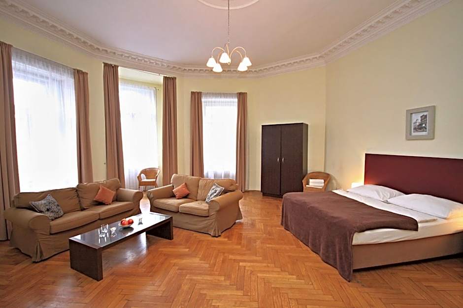 These large apartments feature views of the Vltava River and dancing building. They have high ceilings and are equipped with a charming blend of classic and modern décor. A fully-equipped kitchen and seating area with a coffee table is provided.